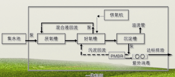 一體化有機(jī)廢水處理設(shè)備采用傳統(tǒng)成熟的A/O生物處理工藝,具備去除BOD5、COD、TN、TP于一體的功能,具有技術(shù)性能穩(wěn)定可靠、去除污染物效率高、體積小、重量輕、可自由移動(dòng)、維護(hù)和維修方便、動(dòng)力消耗低、不受水位高差限制等優(yōu)點(diǎn)。
